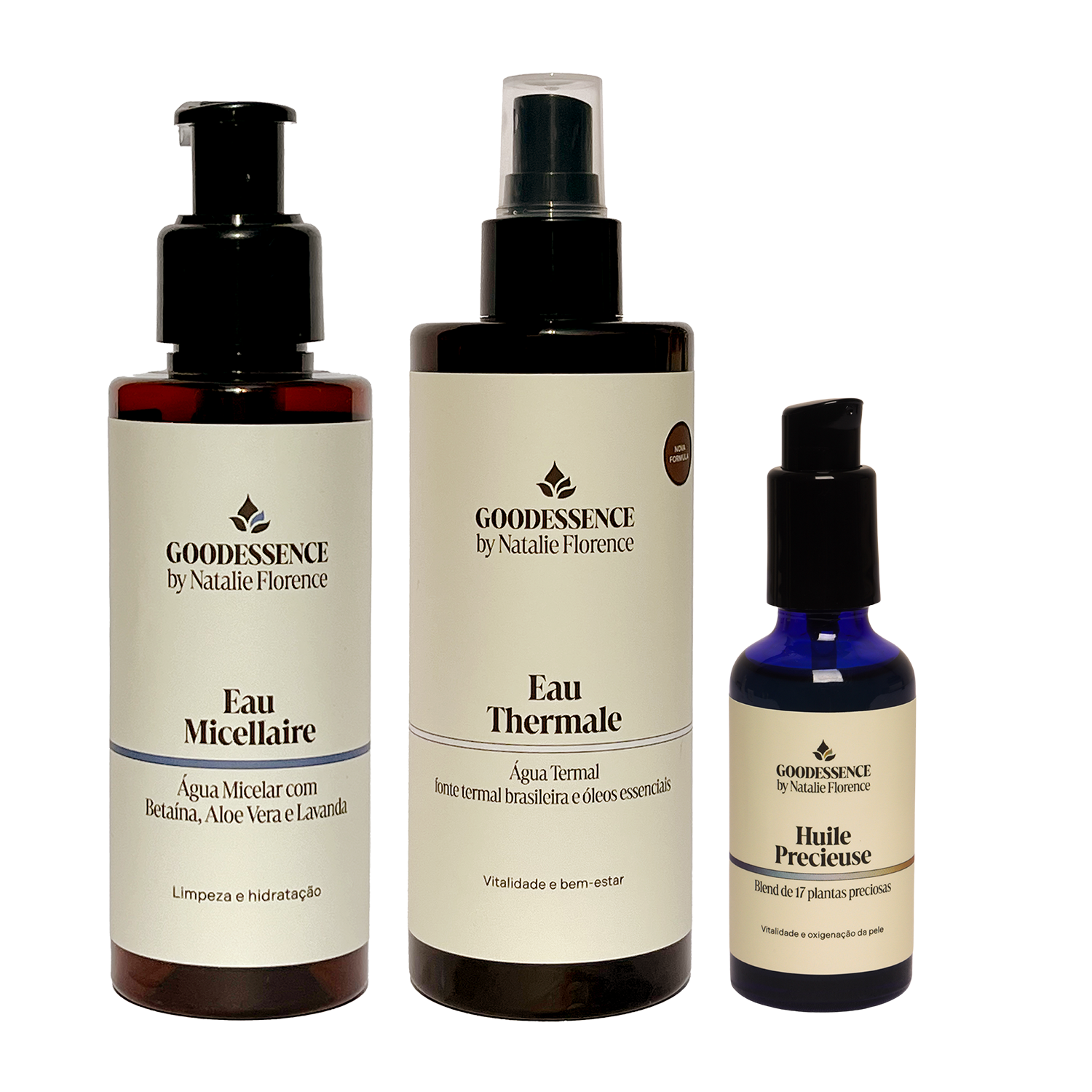 Com o blend selecionado a Água Micelar composto de aloe vera, betaína e óleo essencial de lavanda francesa elimina as sujidades do dia, regulariza a oleosidade, protegendo a barreira hidrolipídica e mantendo a hidratação natural da pele. A Água Termal rica em sais minerais e oligoelementos, hidrata, suaviza e acalma a pele no pós barba. O Óleo Precioso com sua sinergia de 17 plantas preciosas auxilia na oxigenação da pele promovendo melhora na circulação, trazendo emoliência e maciez à pele e ao pêlo da barba.